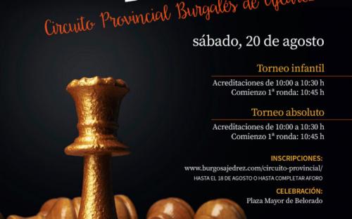 7ª prueba puntuable del VII Circuito Provincial de Ajedrez 2022. Se llevará a cabo en la Plaza Mayor de Belorado.