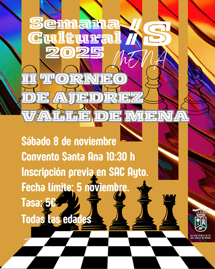 El sábado 8 de noviembre, a partir de las 10:30 horas, se celebrará en el Convento de Santa Ana de Villasana de Mena el II Torneo de Ajedrez Valle de Mena, una cita abierta a jugadores de todas las edades que combina deporte, aprendizaje y convivencia.