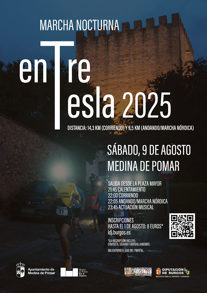 La ciudad de Medina de Pomar celebrará este sábado 9 de agosto una nueva edición de la Marcha Nocturna EntreTesla, una de las pruebas más esperadas del verano dentro del Circuito Provincial de Travesías Nocturnas que impulsa el Instituto para el Deporte y Juventud de la Diputación de Burgos. La convocatoria ha vuelto a despertar un gran interés, con las 600 plazas disponibles agotadas días antes del cierre de inscripciones, consolidando así su éxito de participación.