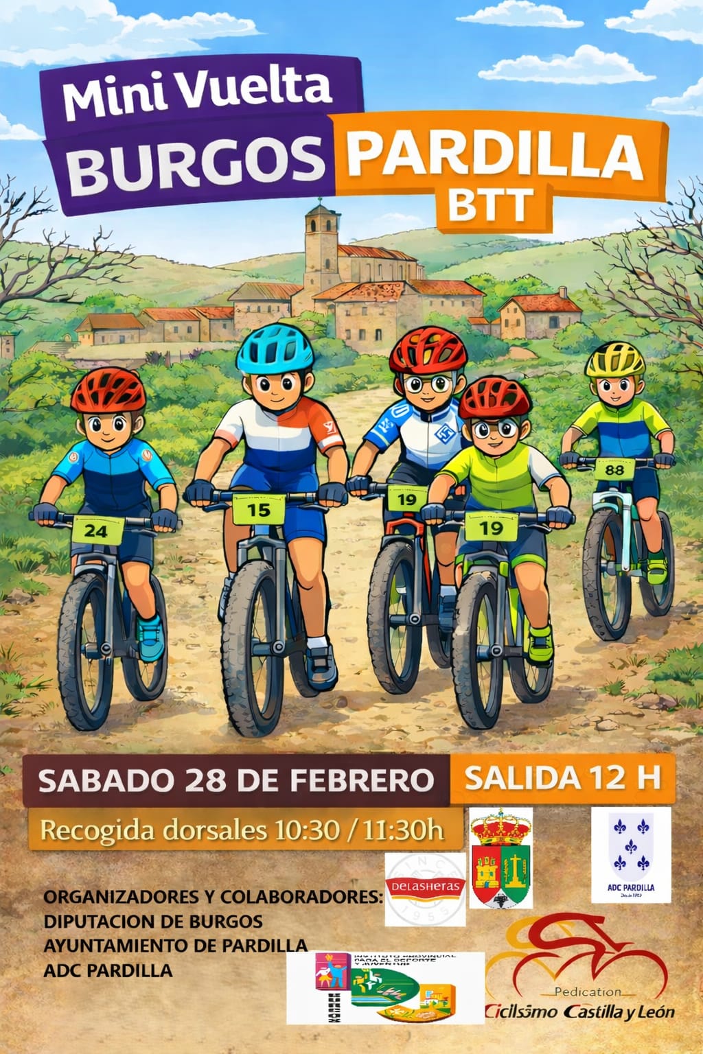 El Instituto Provincial para el Deporte y Juventud de Burgos organiza este sábado, 28 de febrero, la Mini Vuelta a Burgos Pardilla BTT, primera prueba puntuable del XL Circuito Provincial de Escuelas de Ciclismo Federadas.
